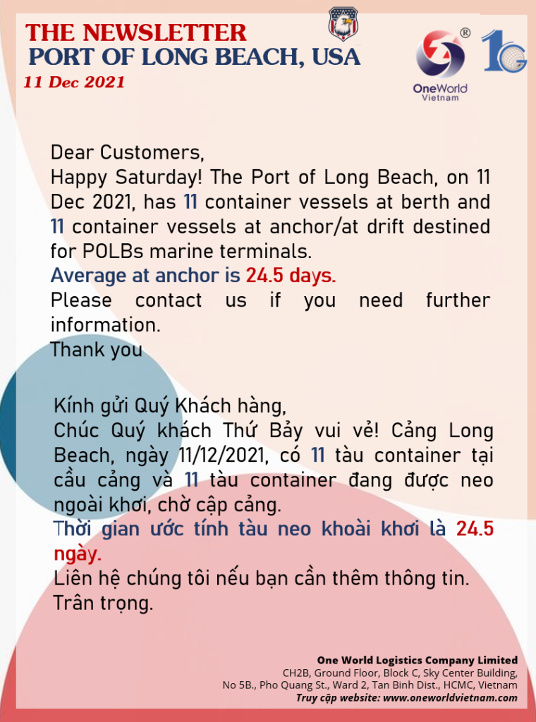 THE NEWSLETTER: LONG BEACH PORT, USA UPDATED 11 DEC, 2021
