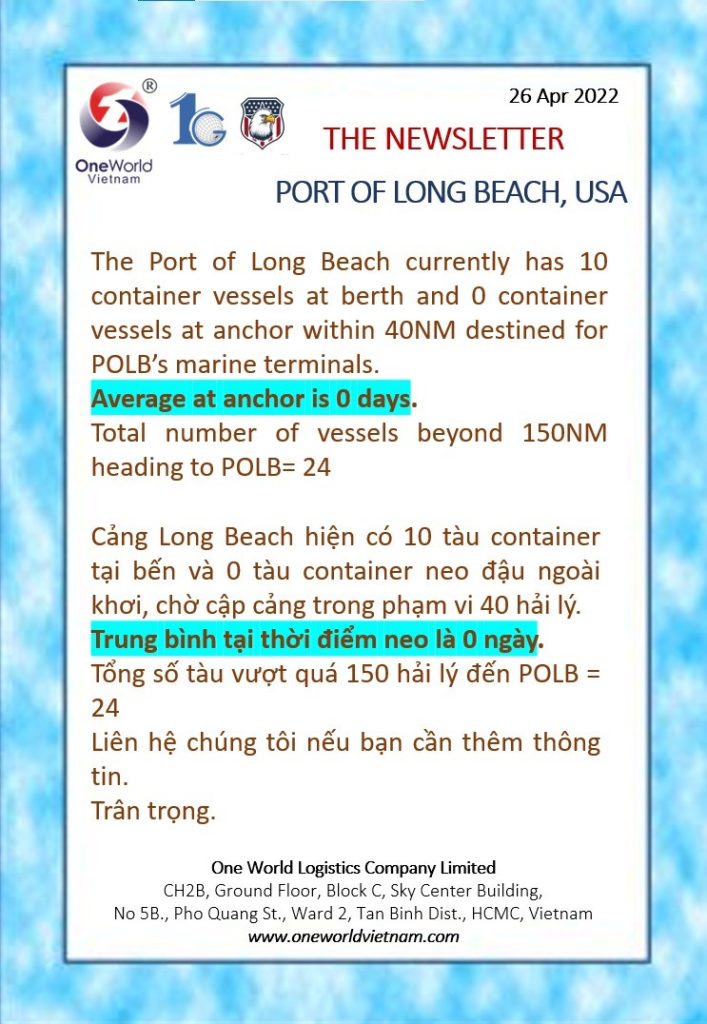 LONG BEACH PORT, USA UPDATED 27TH APRIL 2022